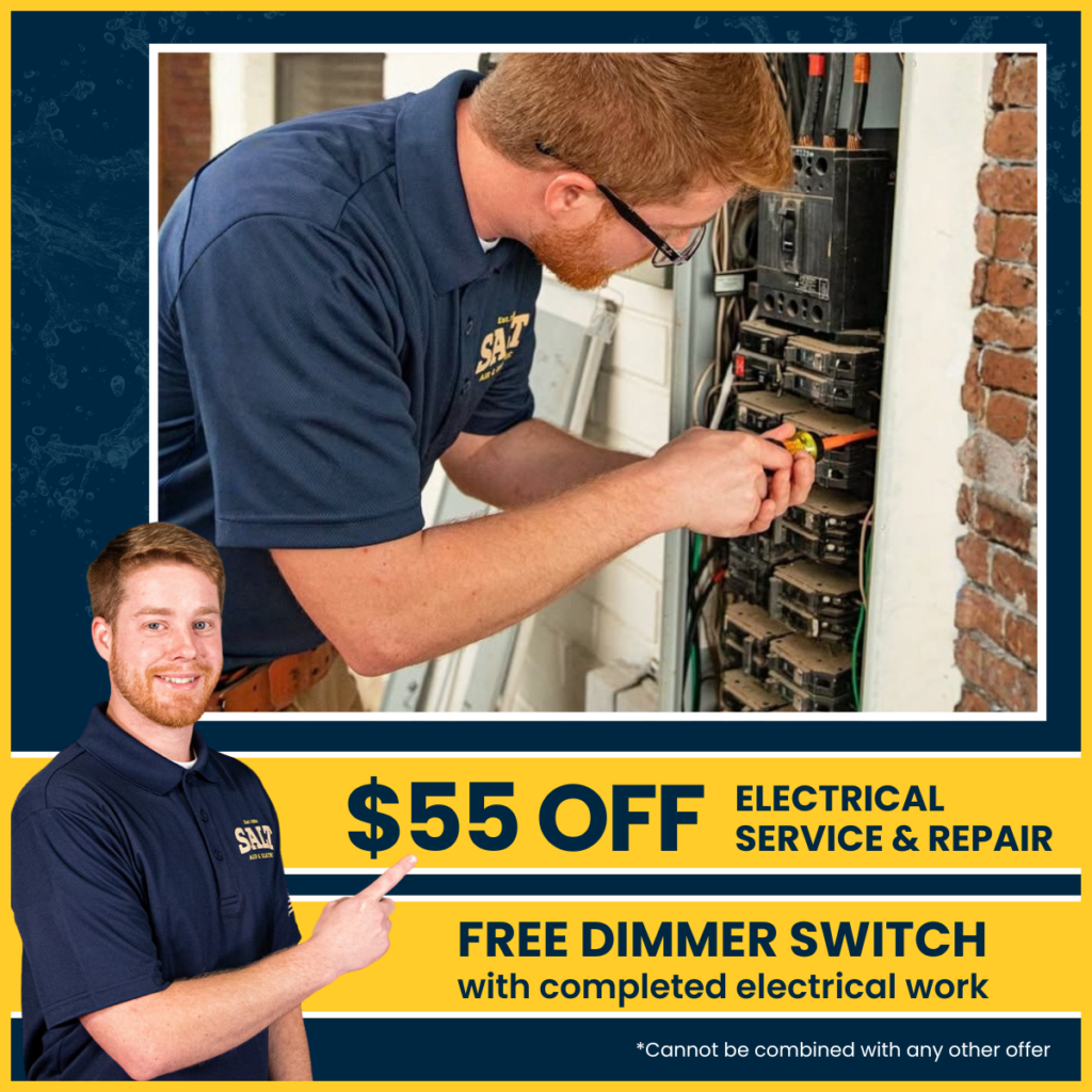 SALT electricians provide red-carpet treatment with real-person customer service, as well as same-day and on-time service. SALT also supplies upfront pricing. Before arrival, we give you a courtesy call, so you know when to expect us. Our electricians wear shoe covers and always clean up after themselves once the job is done. Afterward, we’ll give you another courtesy call and listen to your feedback. We want to hear what you think! All of SALT’s electrical services are backed by a 100% customer satisfaction guarantee.